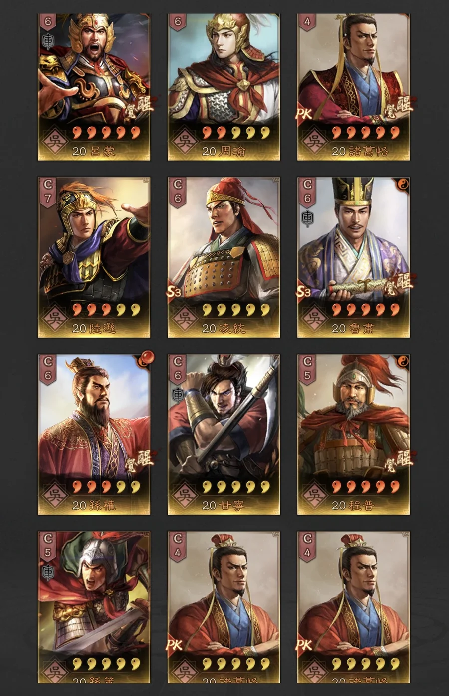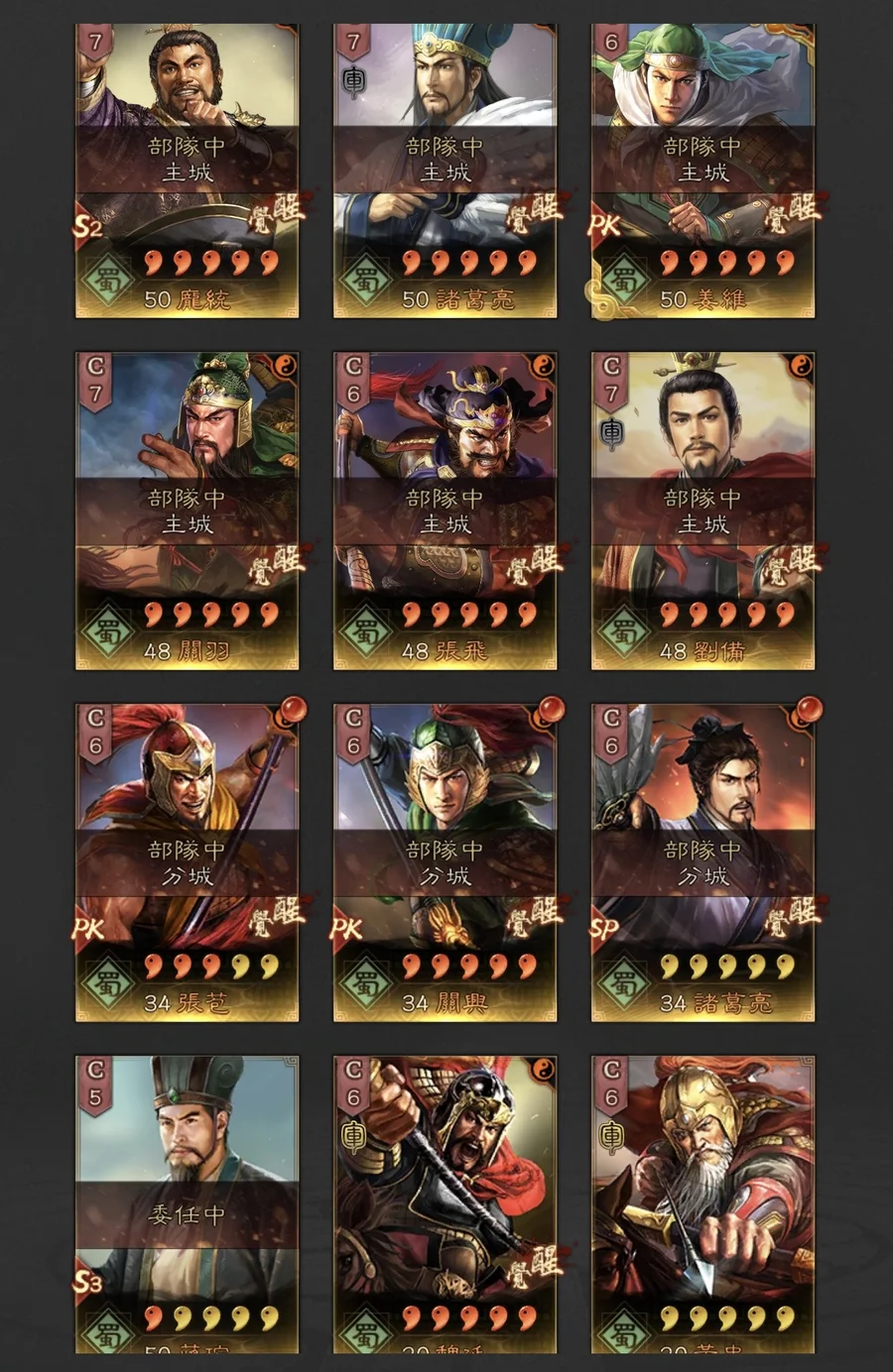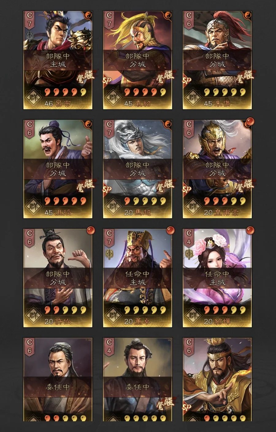 常用主力:五謀、麒麟、吳騎、太尉、桃園、皇馬、遼姬、紅衣…