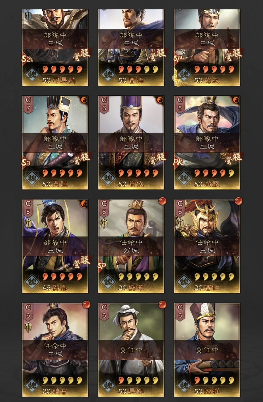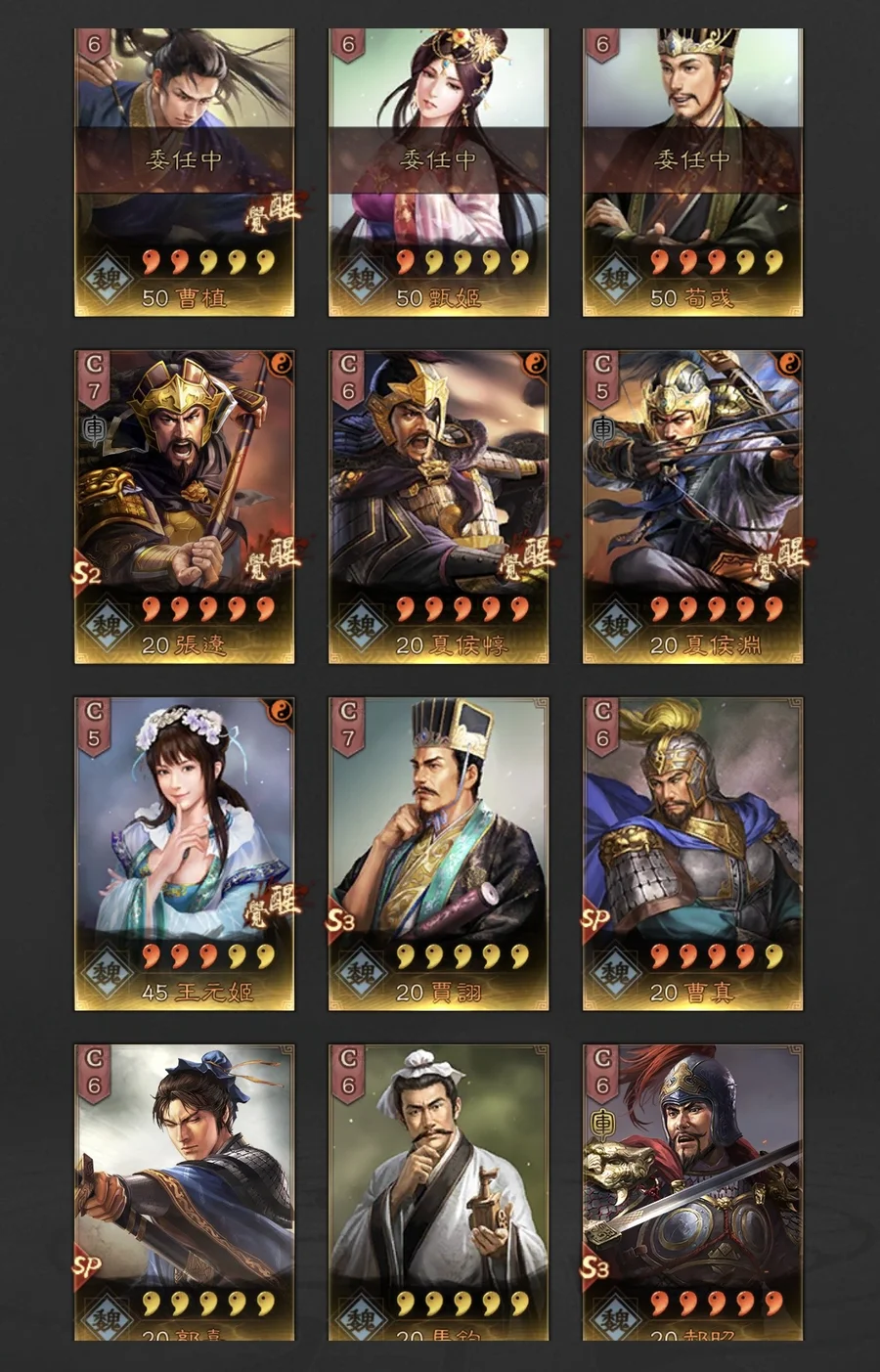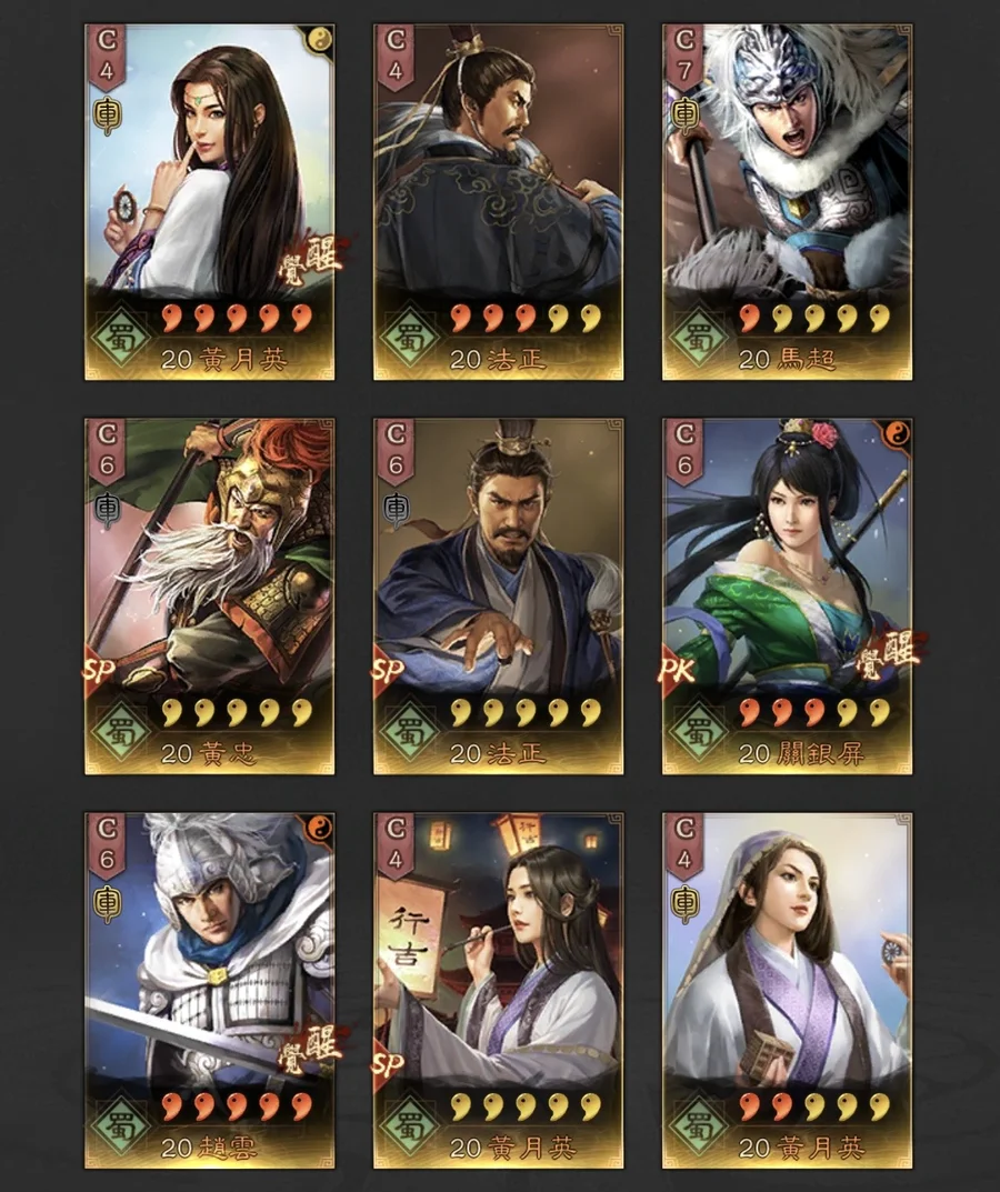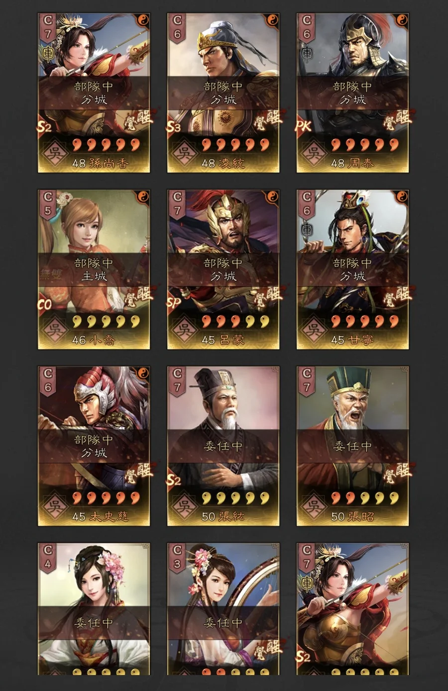 常用主力:五謀、麒麟、吳騎、太尉、桃園、皇馬、遼姬、紅衣…