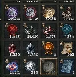 其餘如圖(咒幣46W,黃金鑄幣1665)
