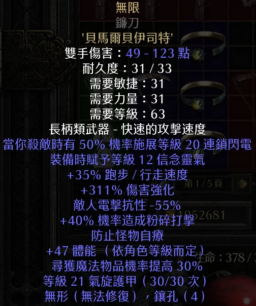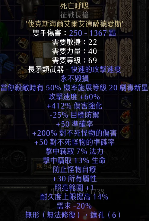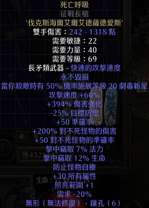 無形靈光巨型長柄(17靈/253傷/頂致命 = 400T