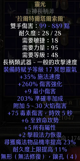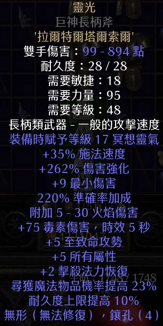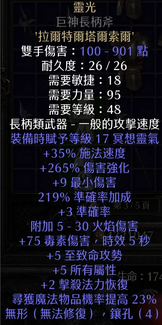 無形靈光巨神斧(17靈/260傷/頂致命 = 800T