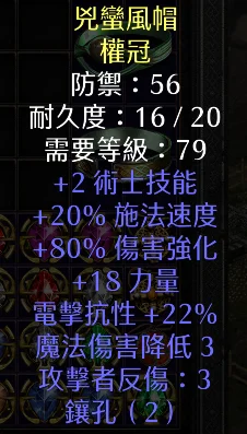 兇蠻風帽(2技/20高施/80增傷/18力/2孔 = 4000T