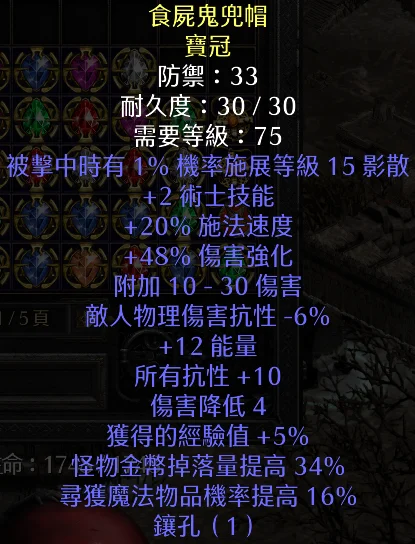 食屍鬼兜帽(2技/20高施/全抗/高傷物理珠 = 1200T