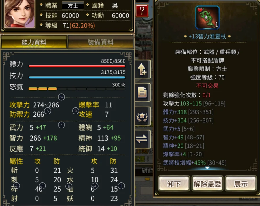 裝備+8-13 總加持61
