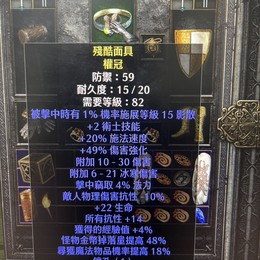 非天售術士2技/20施法/14全抗/吸法、加生命黃頭!鑲一顆49ED/-10物傷進頂物理珠!!(如圖)