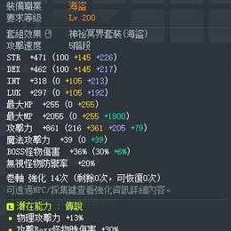 武器主職用潛:70%BOSS13%物攻(次頂職業主流主潛能 對等80%BOSS10%物攻)