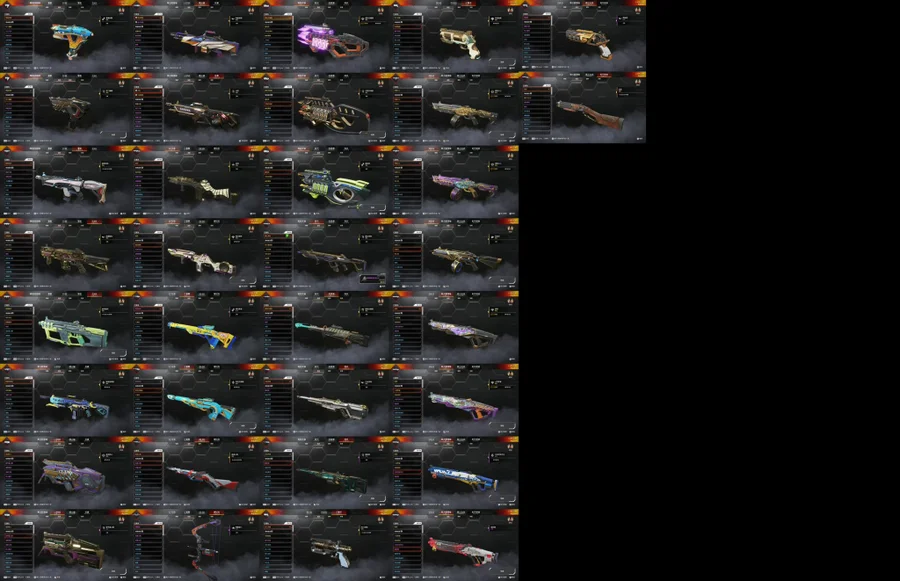 內容:冷凍覆蓋 / 冷酷301 / 鍍金死敵 / R99進化 / 電能狙擊進化 / EVA進化 / 獒犬進化