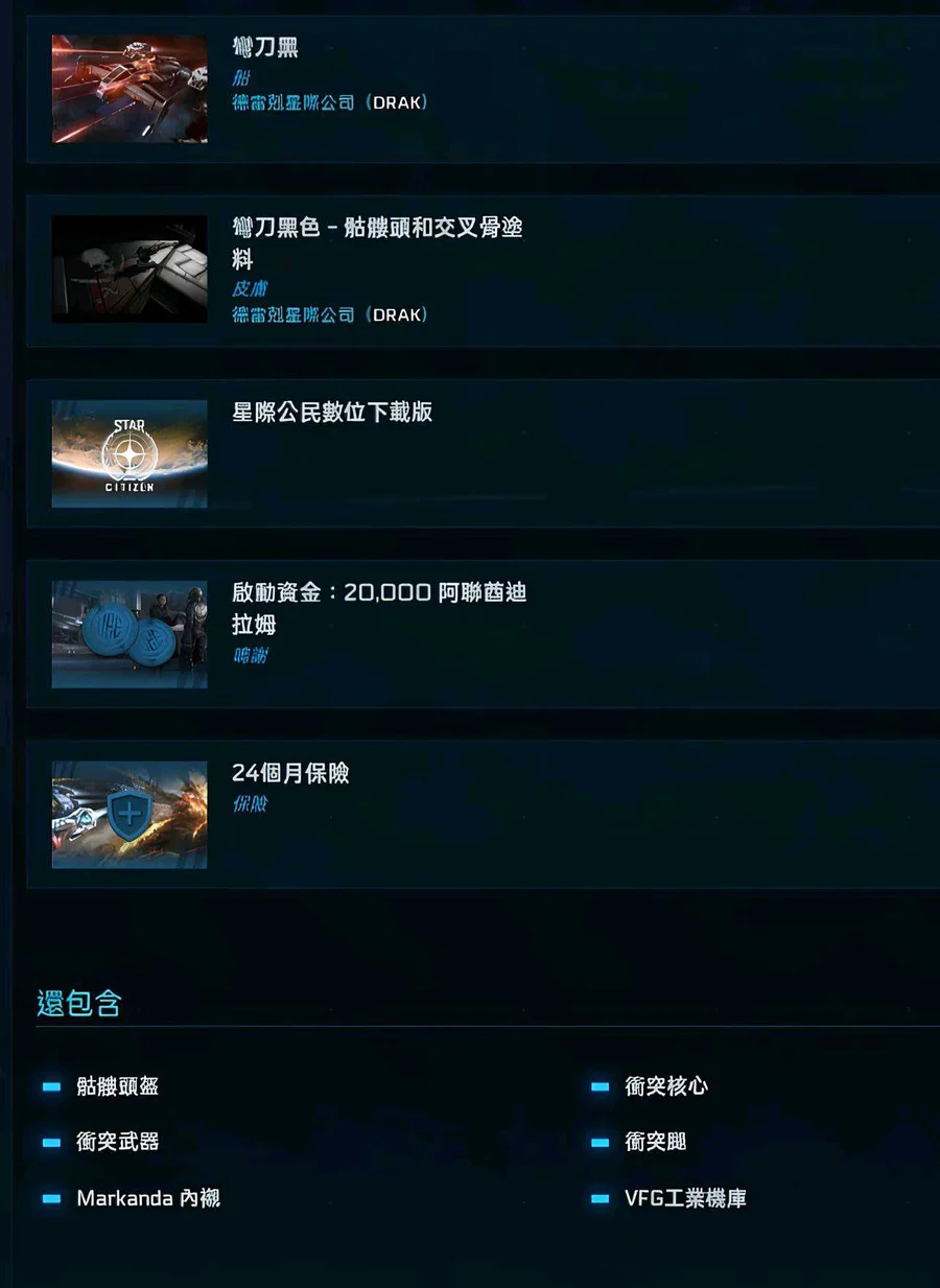 星際公民 黑彎刀 海盜組合包 原價台幣4300 (前三圖)