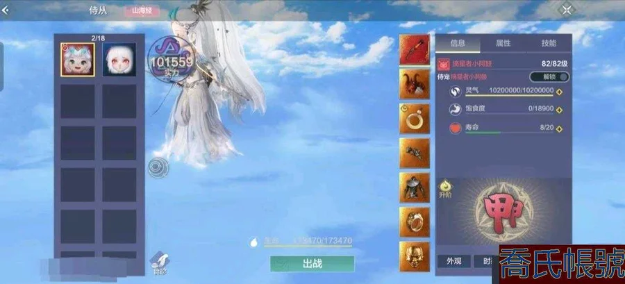 【999等】100區|戰力:159600|寵物:熊貓,睚眥,霸下,三青鸟,火離獸|備註:4神