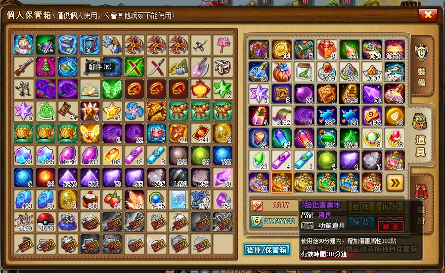角色裝備:目前是裸戰力 價錢可議 因為真的沒時間遊玩想找個能用心經營的買家 如果喜歡歡迎詢問 倉庫很多庫存慢慢看銀行也還有2萬多點卷在裡頭