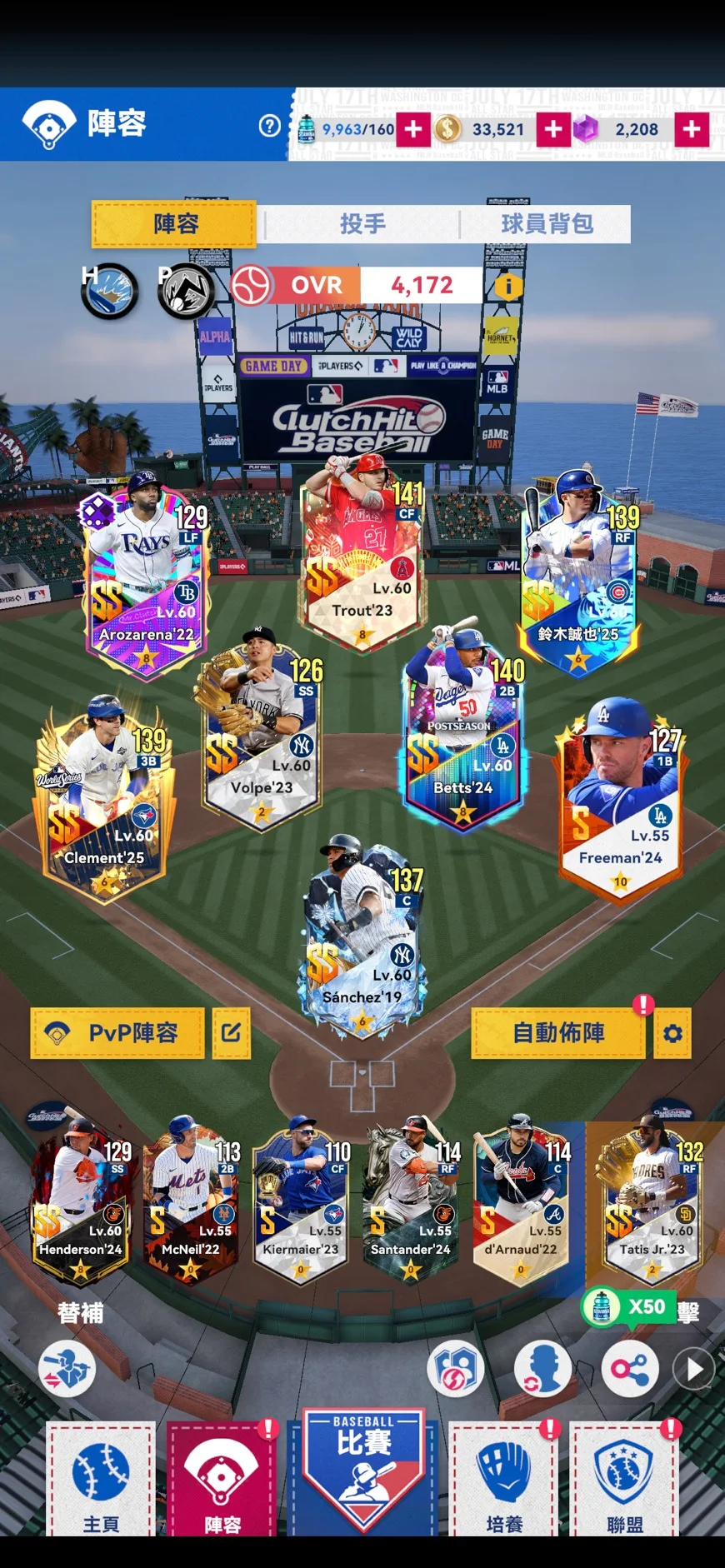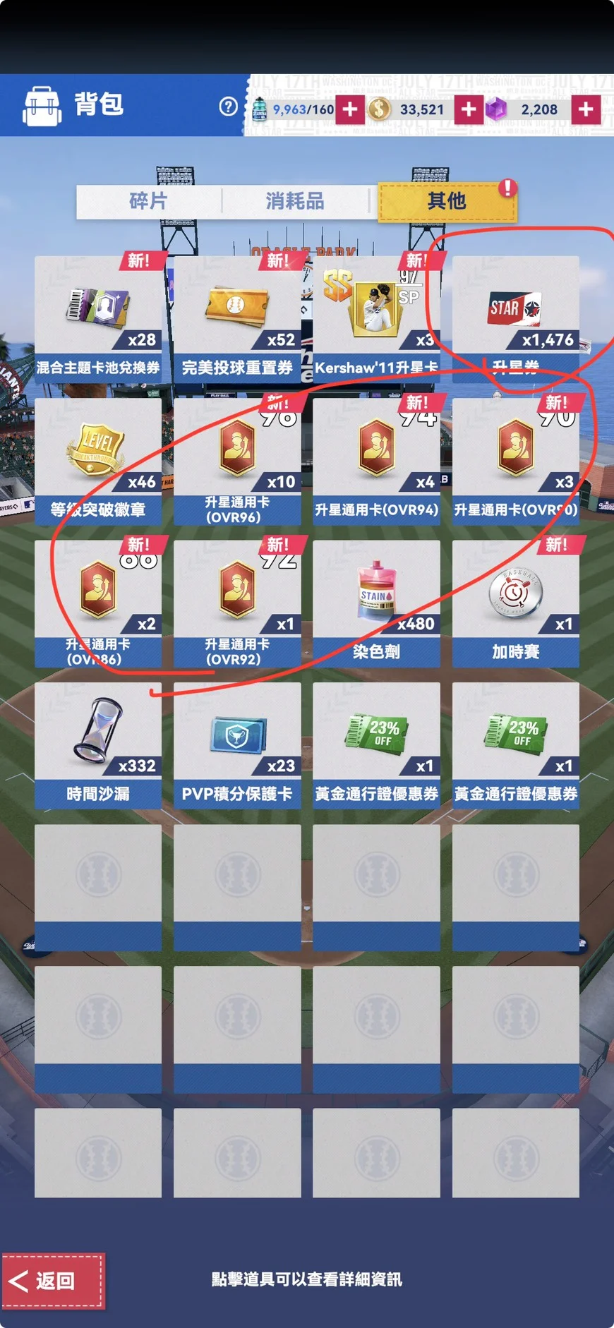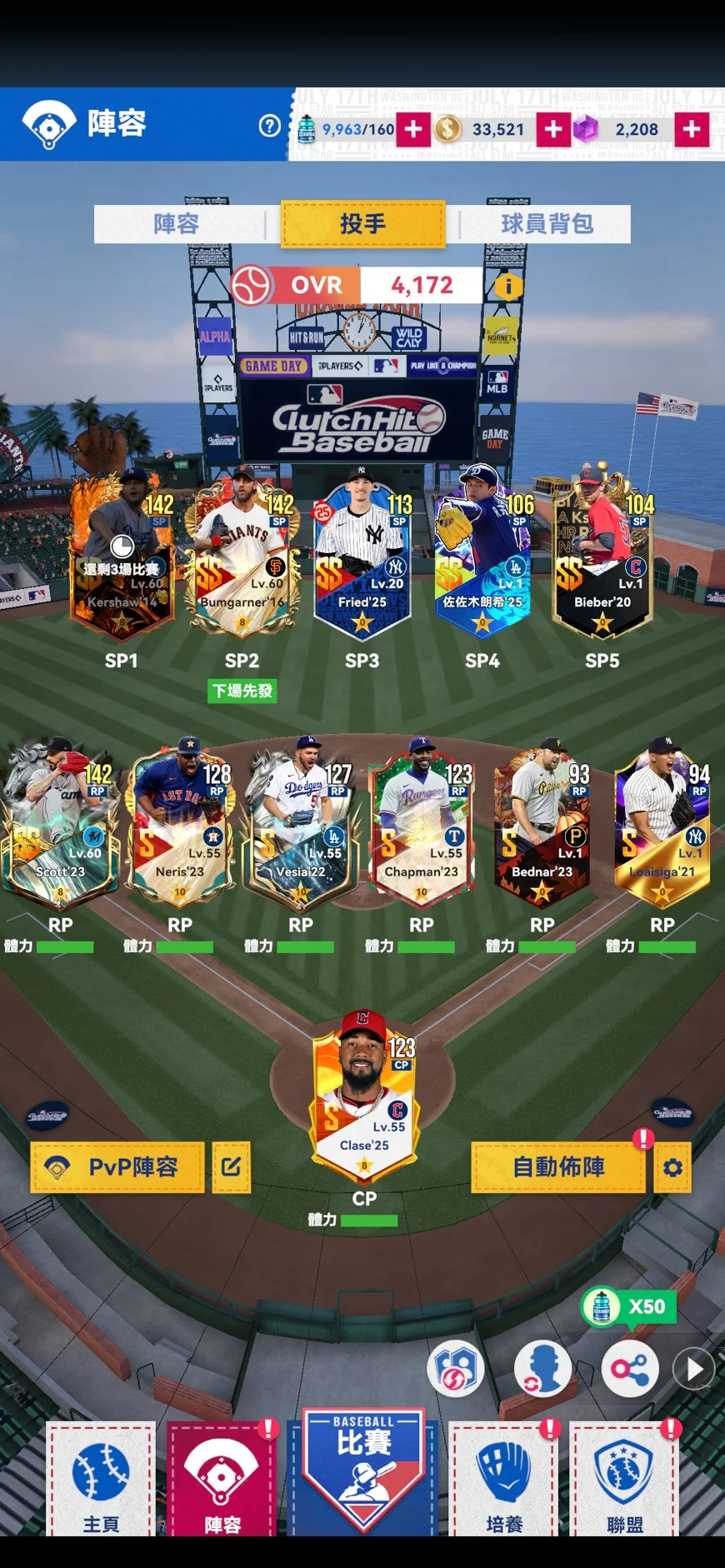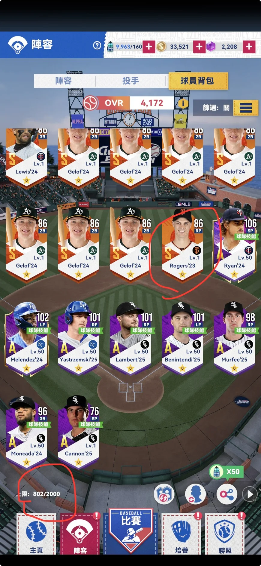 1.先發9人、先發投手都SS卡;共21張SS卡;幾張已8星