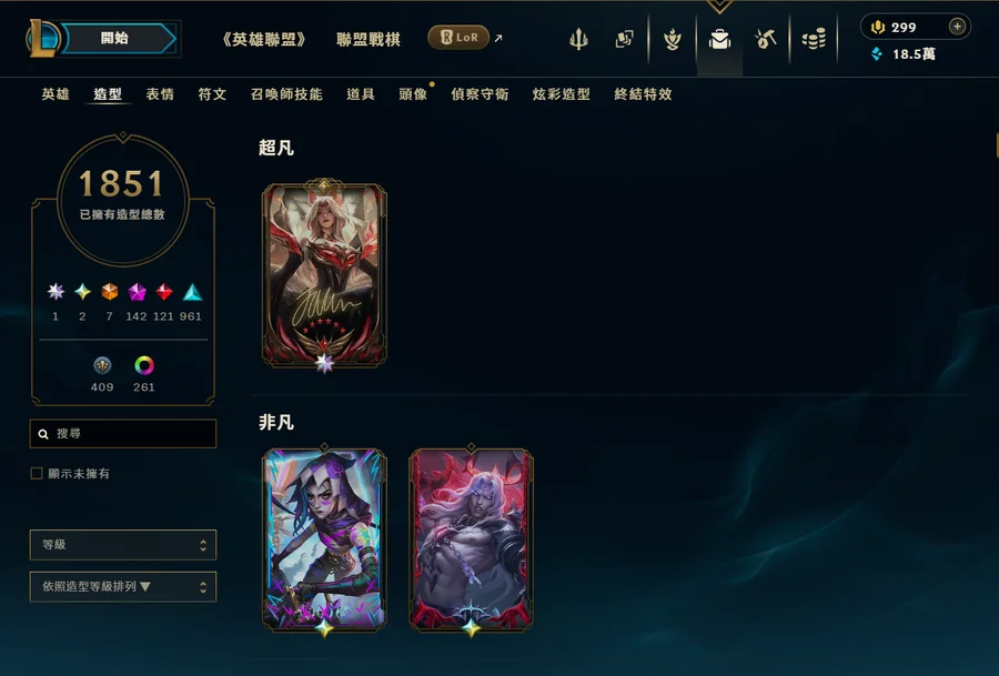 【562等、白金、999英雄、1851造型】全造型1851個 有資料