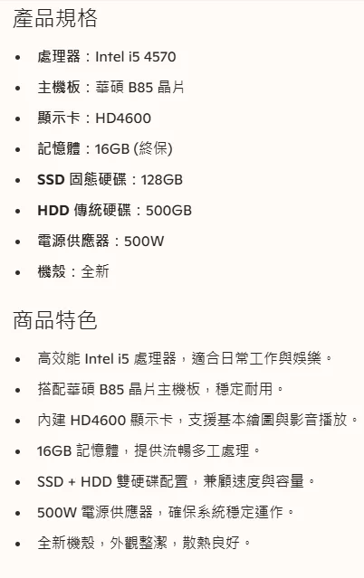 天堂經典機 I5-4570+B85M+16G+SSD128/HDD500+PWR
