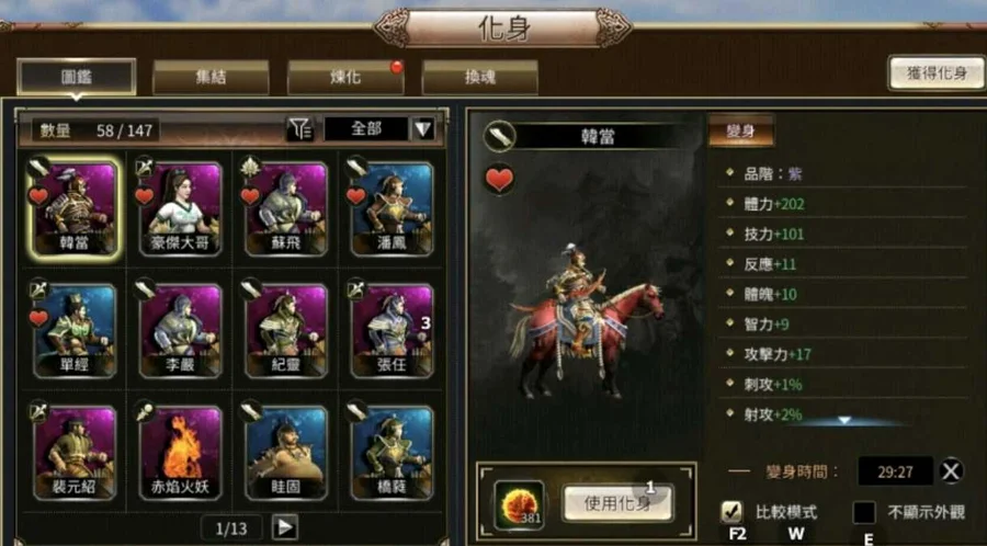 10紫化:韓當(冰箭、張任.蘇菲.李嚴.豪傑大哥.火妖.裴元紹.紀靈)