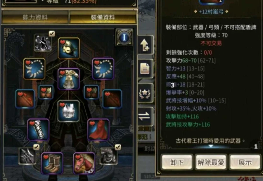 70+12弓 +12雙手 防禦加持62