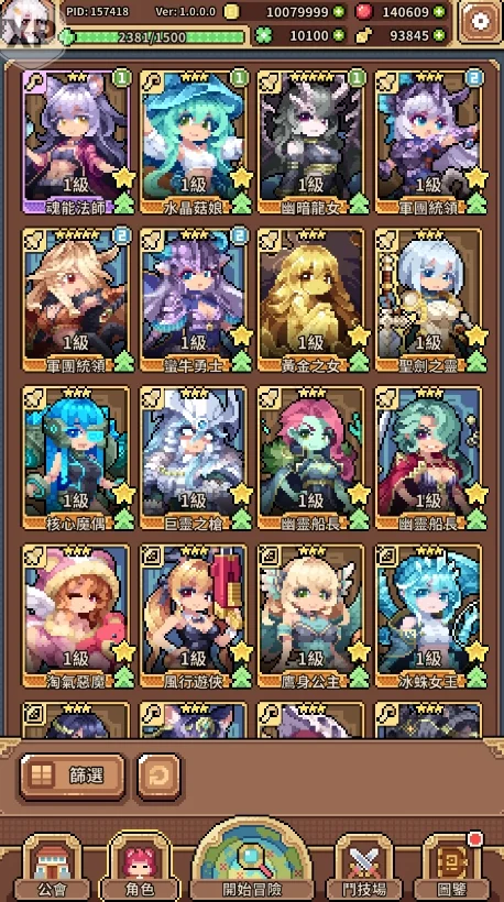 999萬金幣+99萬鑽石+9999幸運草+99999小魚乾+全造型+全裝備神器+全符文=1200
