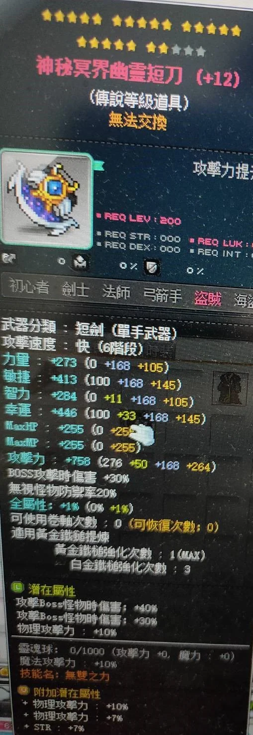 武器主職用潛:70%BOSS10%物攻(強力職業主流主潛能)