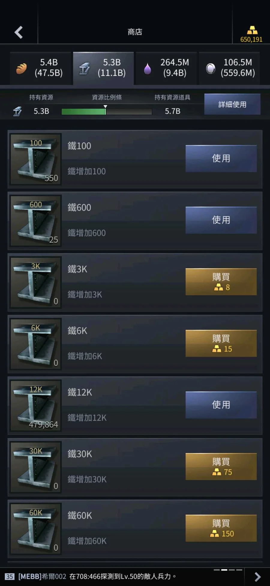 【35等】可搶劫的資源帳號五隻都有豐富的鐵資源,也可協助打艦隊練功!