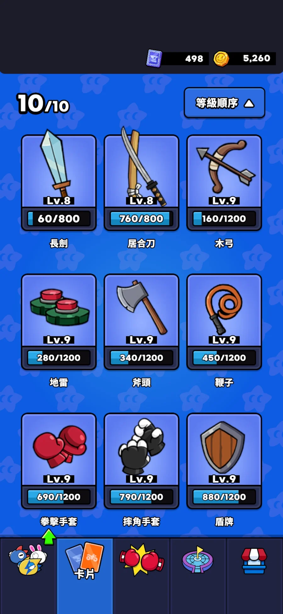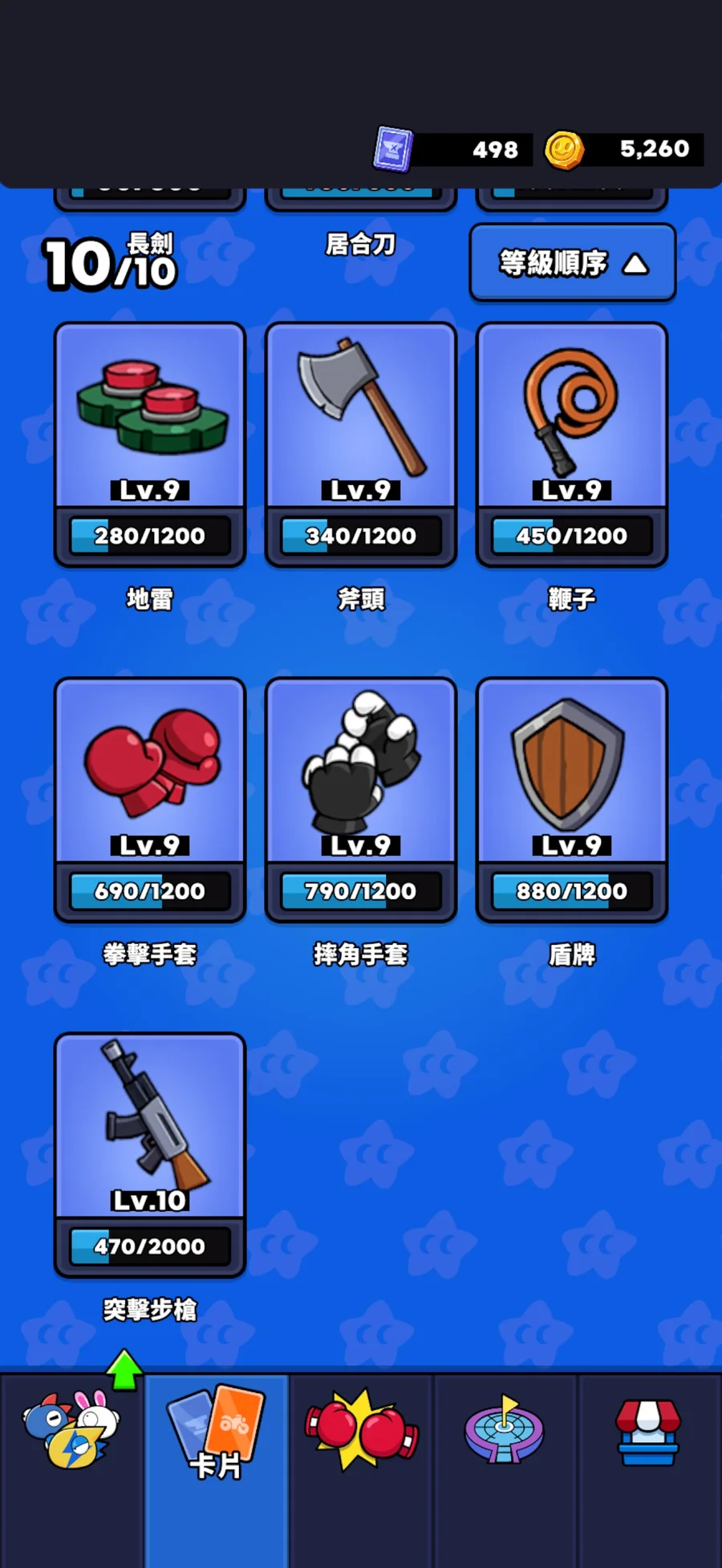 武器萬用眷接近500張,可隨想玩甚麼武器去升級