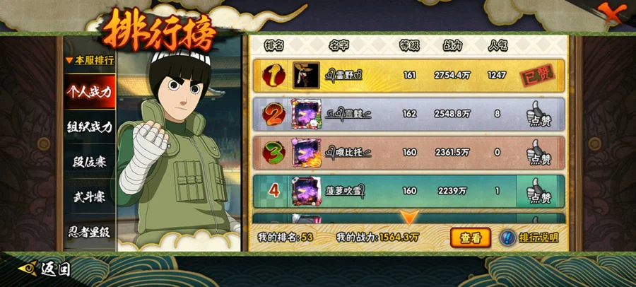【9999等】主打39S,310左右個忍者,戰力1500多萬,全服排行53名