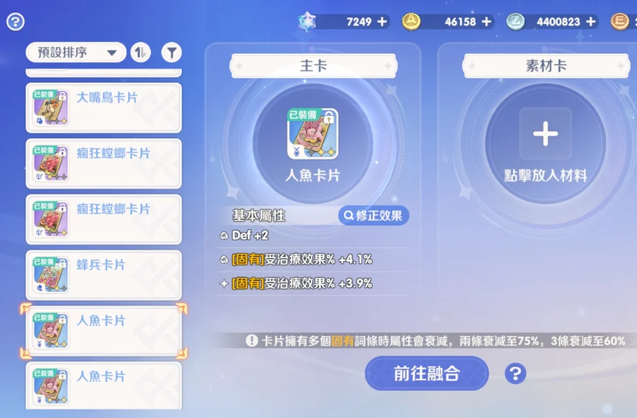 戒指:妖道 貍貓 人魚士兵(雙固 治療+治療)*2