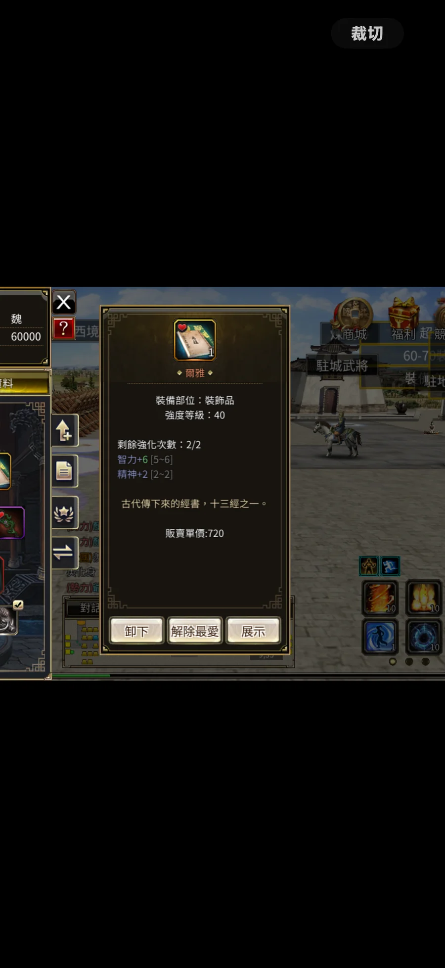 沮授集火方,武器+14淮靈45%、12靈山杖46%(覺得不漂亮的可以再自己重籌一下或降持槌打到10再拼13),技能已學集火、八面火、真勁,基本任務已解,袁紹基本前2名,妖化張角前3名,買回去直接吃王打寶賺錢,別錯過這次機會