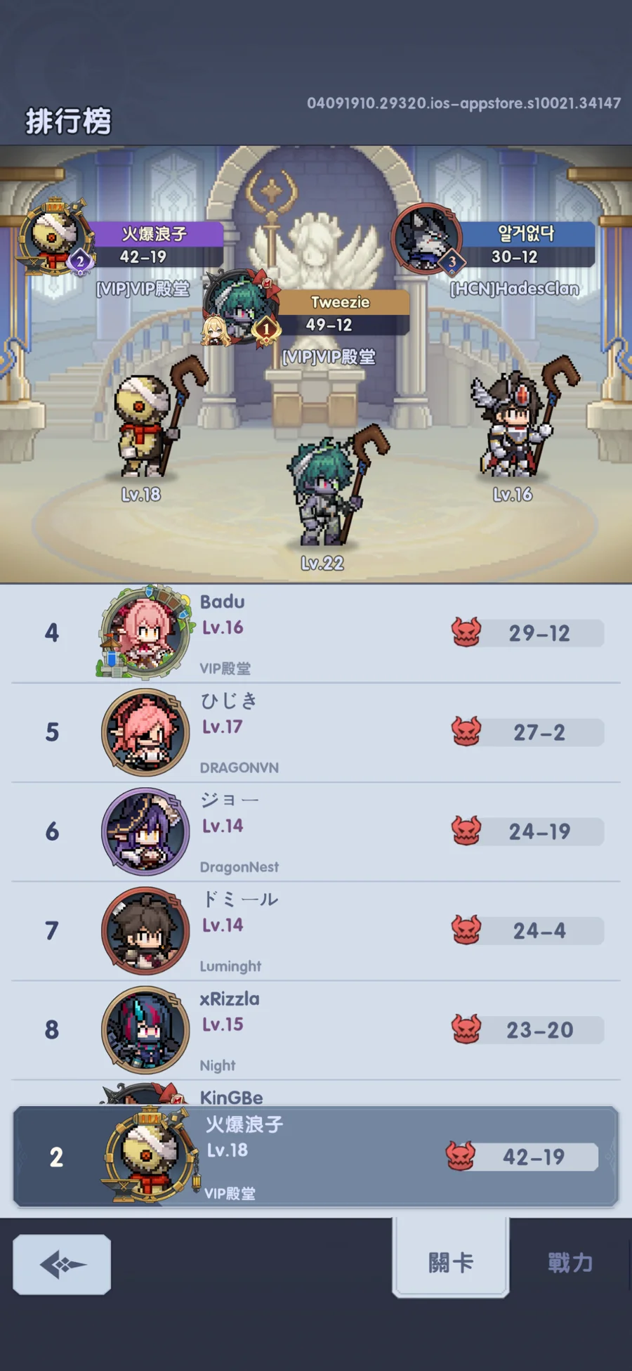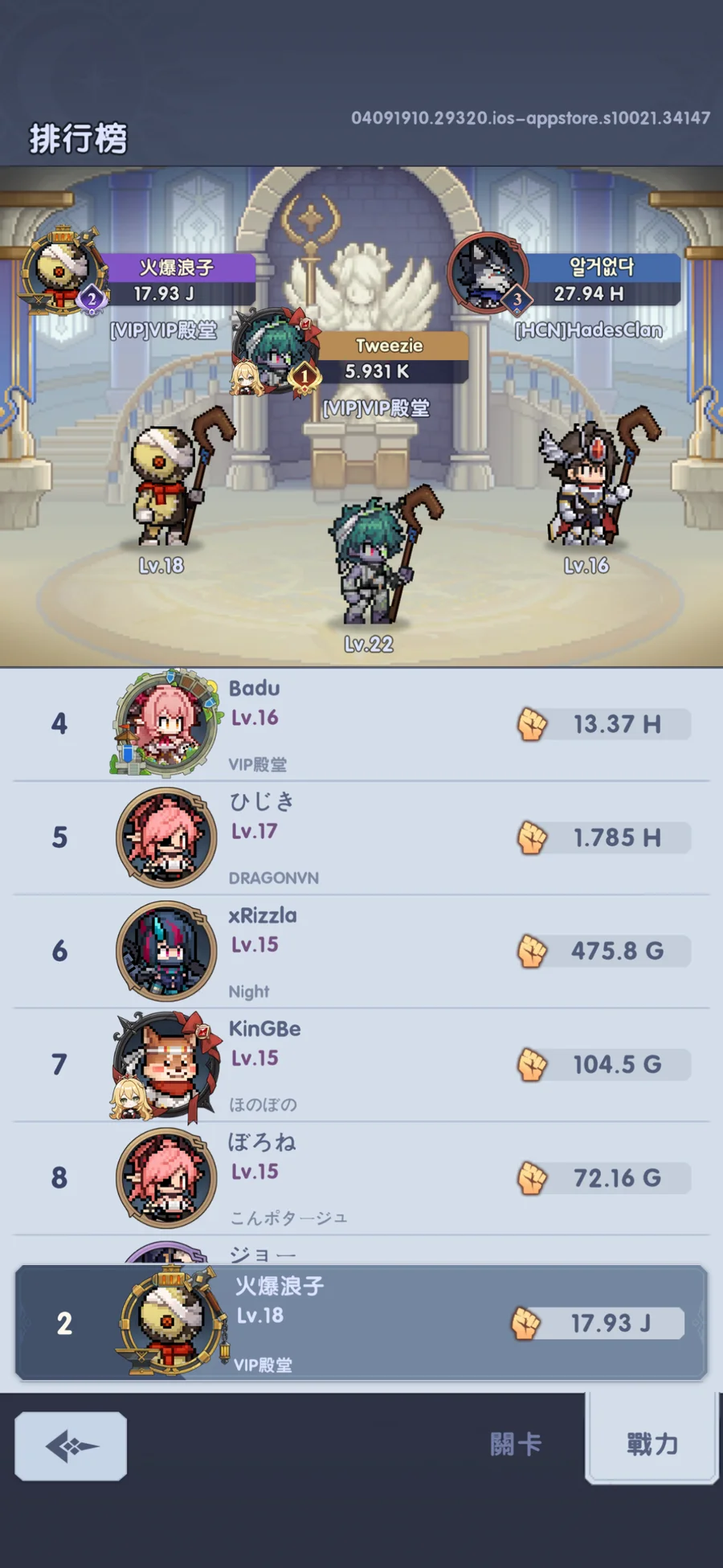 【18等】售21服關卡42-19.戰力17.93J/各排行第2 「第1名公會」會長