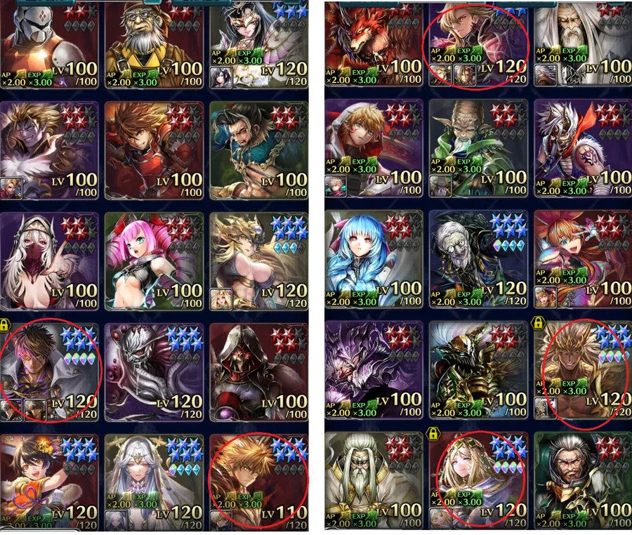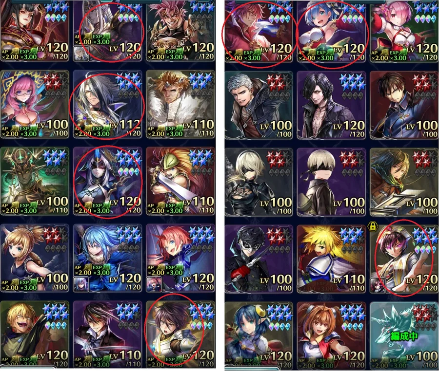 4. 角色 : 魔神凱爸120SC、白騎士130SC、樹補130SC、紅丸130SC、皇帝魯魯修110SC、天照110SC...。