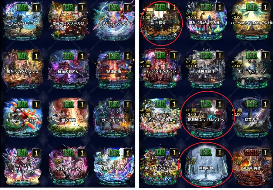 5. 聖物 : 普池SSR缺2,重要的有LR電話亭(紫魂石)、LR吉祥寺(唱片)、SSR外傳(聖靈藥),