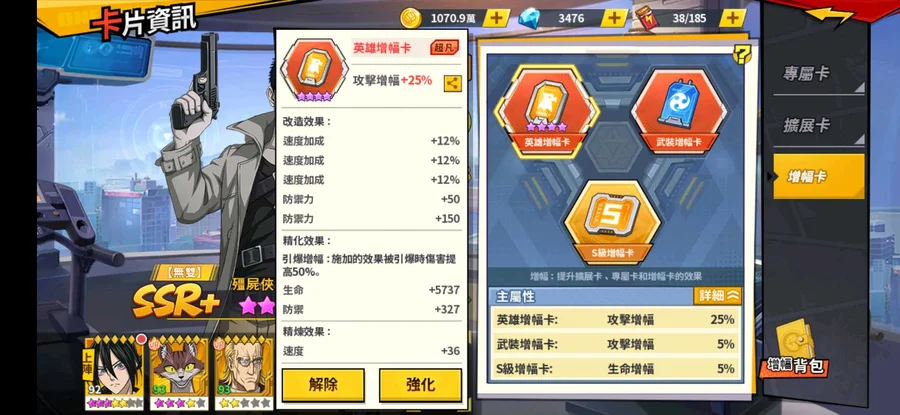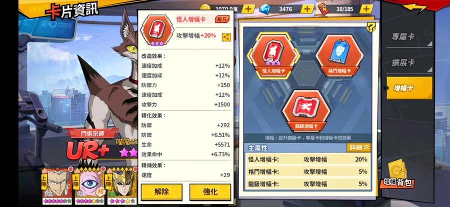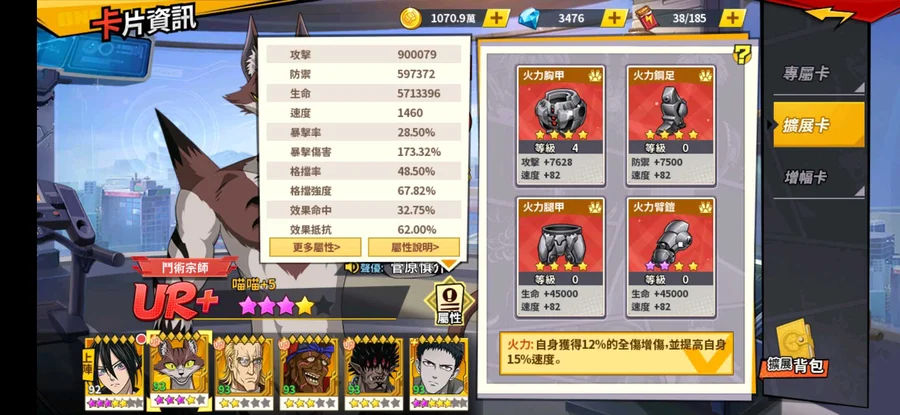 經費快1400 黑卷188 專武104 3速度+50速都洗好 精煉40速 資源還很多