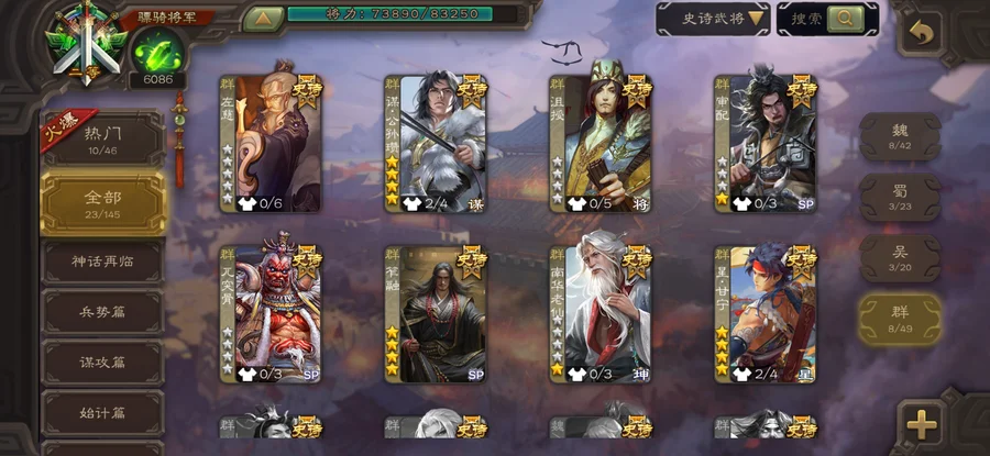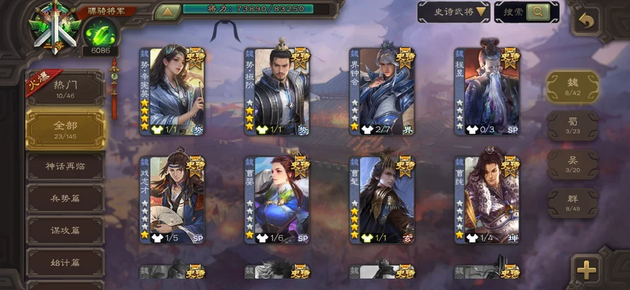 【160等】驃騎將軍,259武將,35動態皮膚,65史詩皮膚。至尊雙型態曹髦,多節鉞令。新品