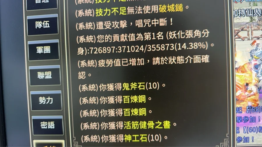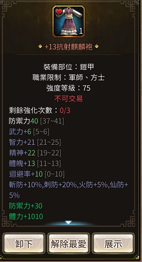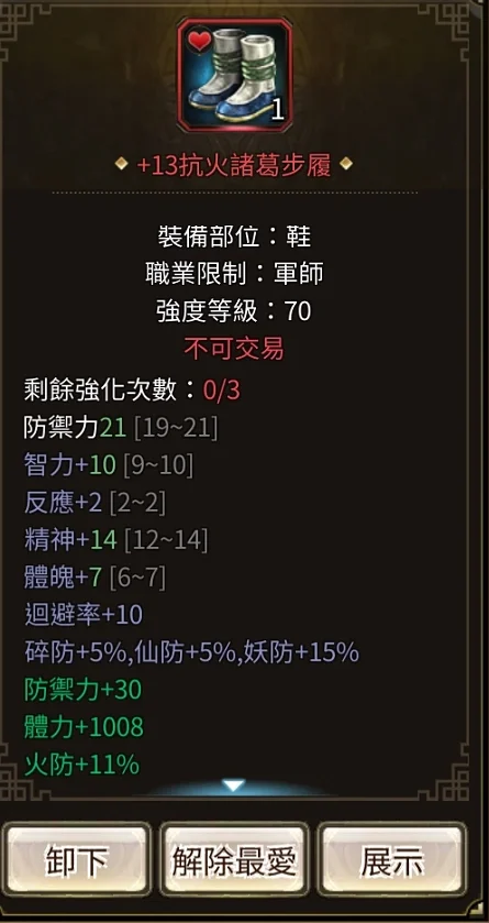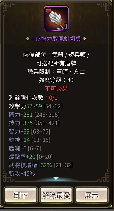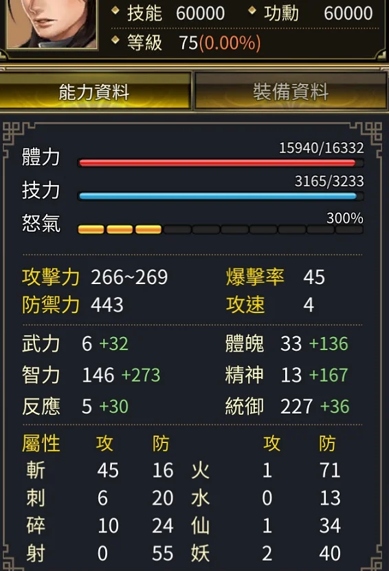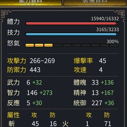 智統軍 血1.63W橘化身累積兩次沒按 紫化身28 總加持91 武器:32%頂扇+13 全身裝備+134隻修羅虎豹 4隻虎豹 後面可直接合成巨神蒐集 集結如圖技能:血書 攻速 八陣 強命 全鎮 小的輔助技都有銀元寶73000 金元寶3900綁定鬼斧10000顆 綁定神工23800 細項看圖