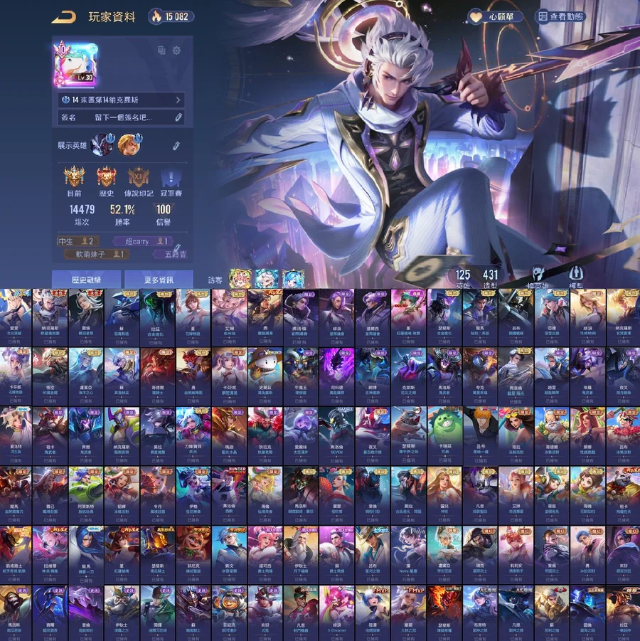 歷史SS永恆傳說!!全英雄四百多造型!共127英雄440造型!勝率近52%!!共12次S戰場傳說印記!!常用奧義皆已齊全!!