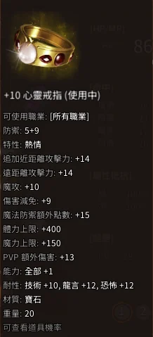 +10心靈戒指X2顆→目前最頂戒指→抗變身(術)