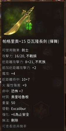 帕格里奧+15亞瓦隆長劍→劍士最強亞武→平價版殷海薩聖光