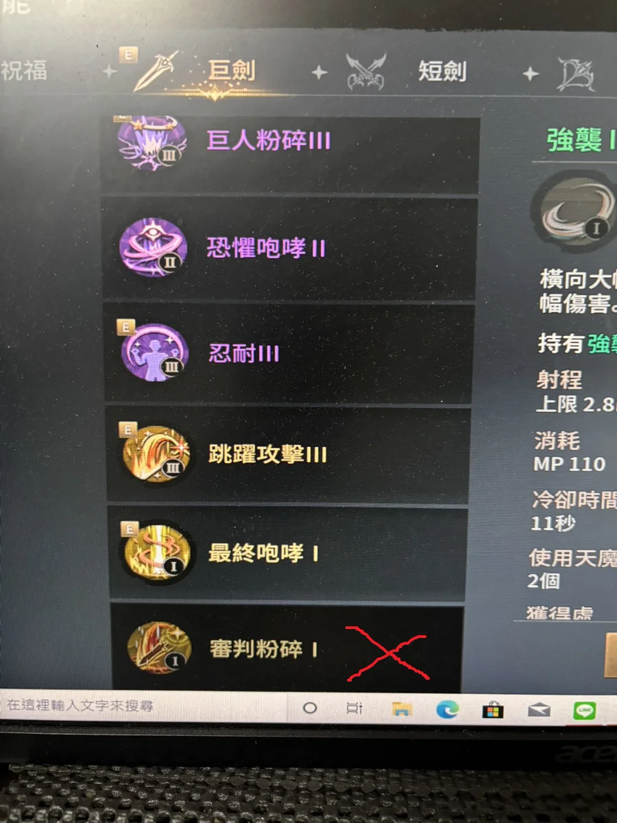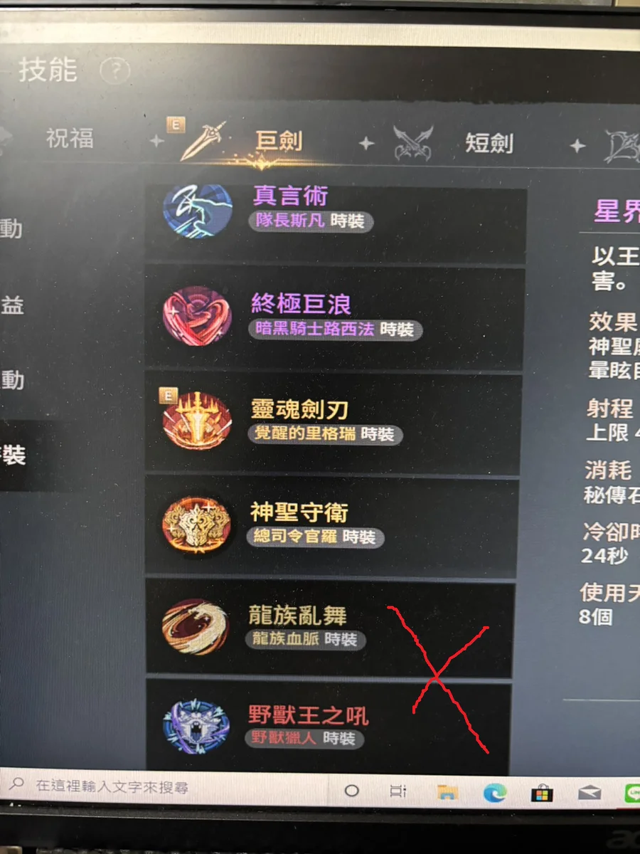 副職業:巨劍(有學金技能在圖片上)