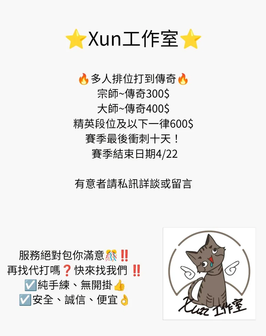 ⭐️Xun工作室⭐️賽季衝刺套餐,最便宜方案只要300$