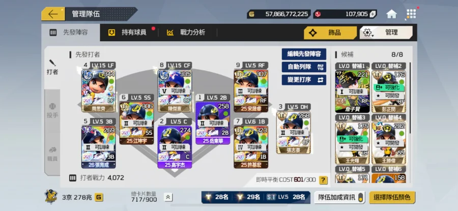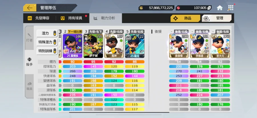 球隊強不強不是看總戰力多少,是看這組合的戰力有多少。