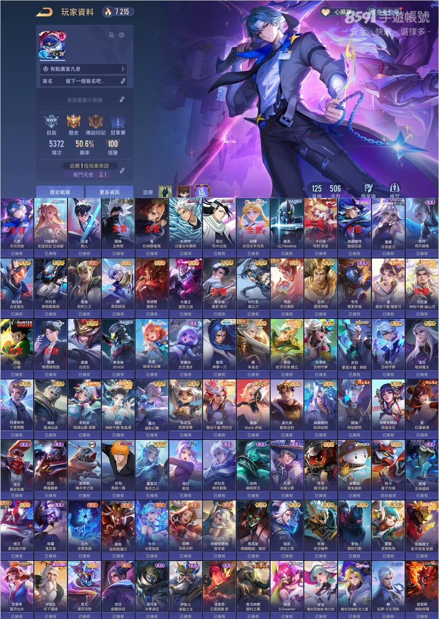 多課金抽獎造型!近全英雄五百多造型!共125英雄506造型!常用奧義皆已齊全!!