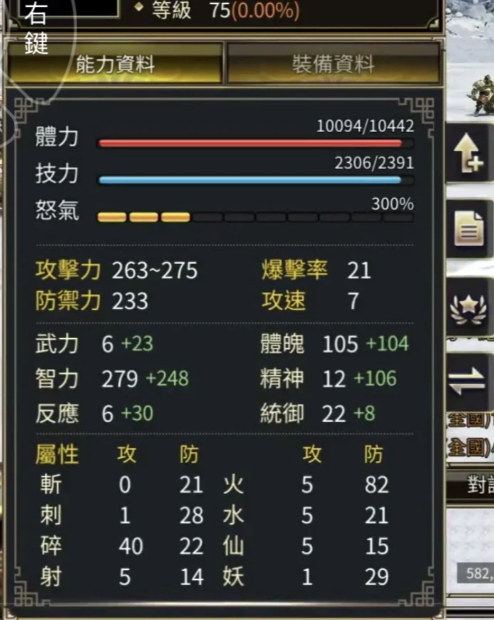 已學技能:集火、真勁、心劍、八面火,基本特殊技都有學