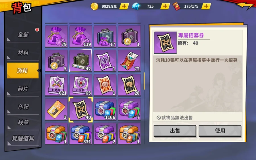 資源:有存抽卡券、各類素材(如圖)