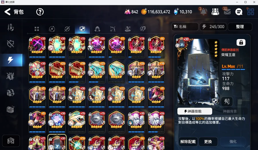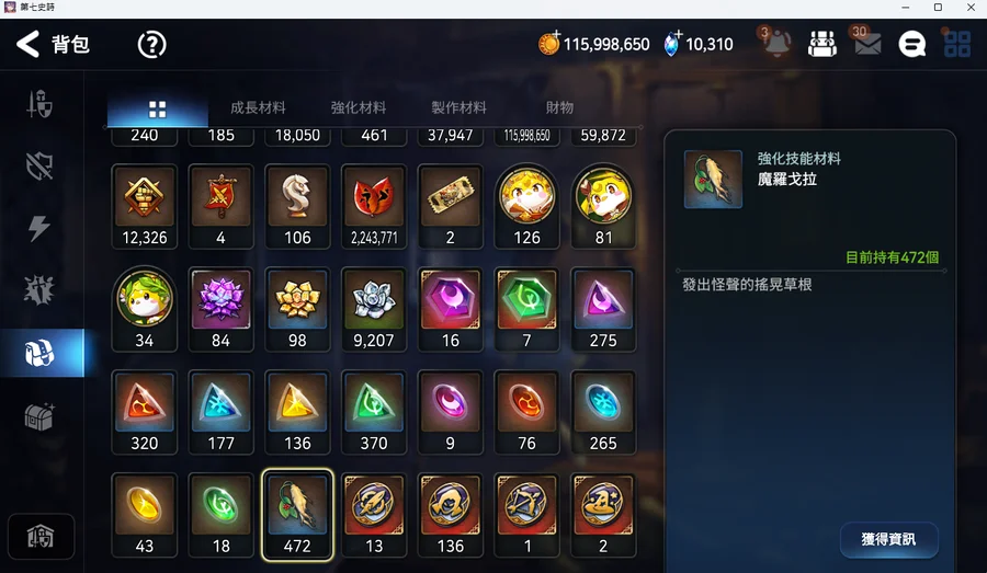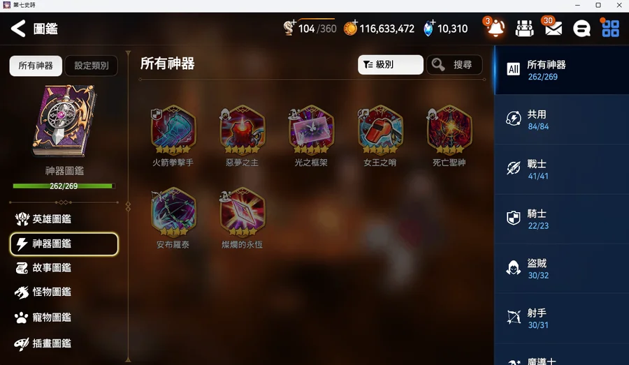 3F、換皮3F都滿破,魂書10本滿破,紅丸刀、換皮拳套都兩個各1滿破