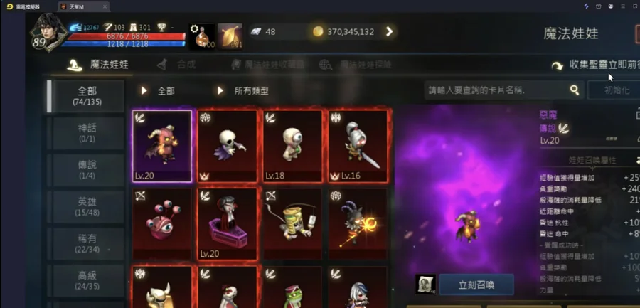 圖片已經算很清楚了,就是一個變身娃娃聖物技能加起來7紫的打幣機