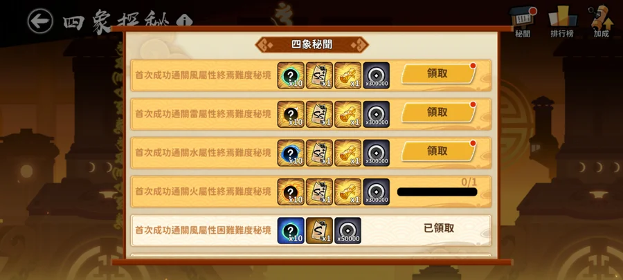 配置每週可輕鬆打過四象雷水風終焉