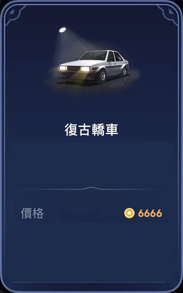【 樂樂虛寶交易】🎁復古轎車(價值6,666金幣)