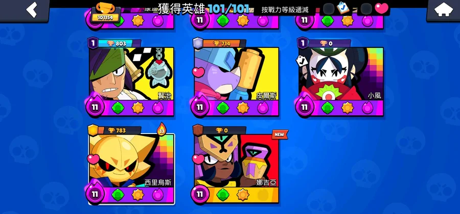 強勢角色完整、能力全滿、配件全滿,全101角色都滿等級,強化裝置齊全,優質帳號,所有角色都可玩,配置高,排位賽可搭配各種陣容,不怕沒角色。