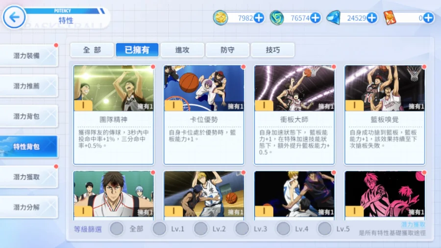 🏀(潛力點數都未用),如圖參考用+(潛力抽取捲X80~100之間)