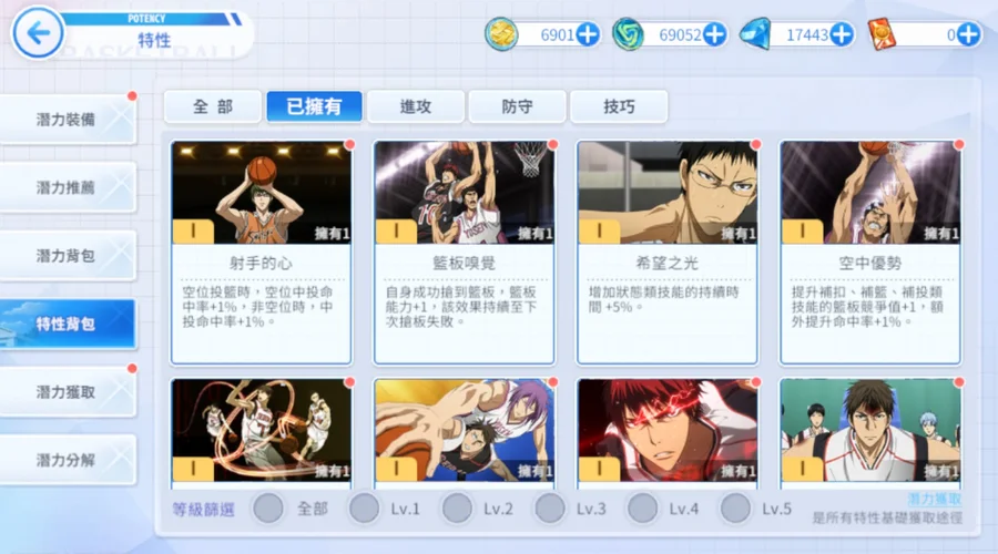🏀(潛力點數都未用),如圖參考用+(潛力抽取捲X100~150之間)