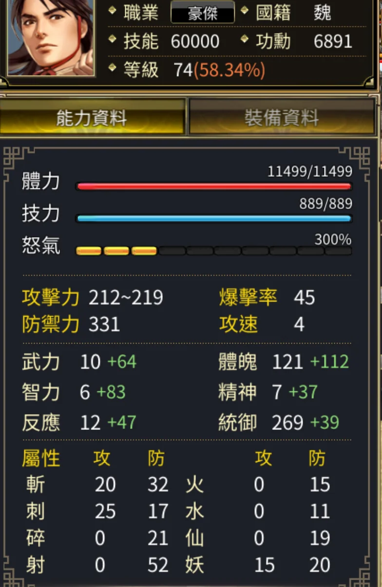 經典74等58%強命水妖豪 技能強命 遠程 兵強 鐵腕 剛體 附10隻弓弩兵