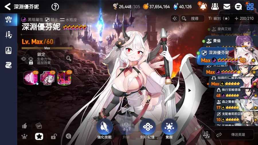 ▶適合新手、中手、小號,有完美開局多隻TOP光暗五星,不是資源玩爛的帳號,培養都往正確方向,多書籤跟天空石讓接下來抽合作角色都不是問題